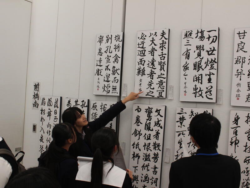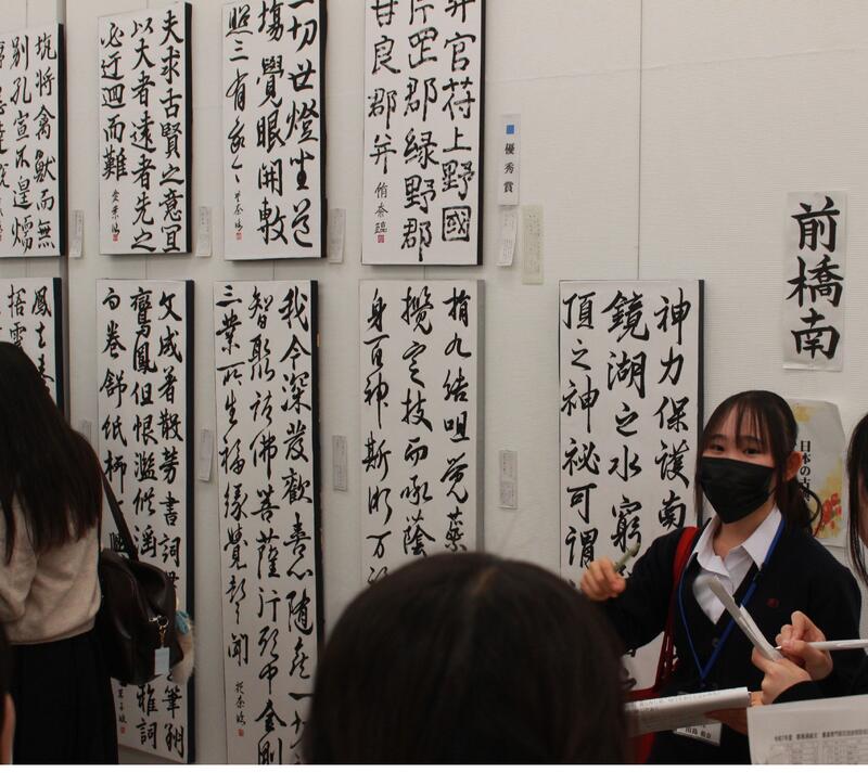 10月24日(金)~29日(水)に高崎シティギャラリーで令和7年度群馬県高等学校総合文化祭書道専門部展覧会が行われました。県内の高校生による書道作品を展示した展覧会で豊かな作風の作品が多数展示されました。会期中の25日(土)には交流会が行われ、出品者がグループで各々の作品を鑑賞し、感想を伝えました。