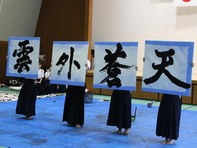 最後には書道部パフォーマンス。「夢想」というこれからの50年に向けての背中を押すメッセージを、夢を見ている前南生、前南関係者に贈りました。