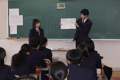 ロングホームルームで、生徒会本部役員の生徒達が1年生の各ホームルームに行き、前橋南高校を楽しく紹介し、1年生と交流しました。